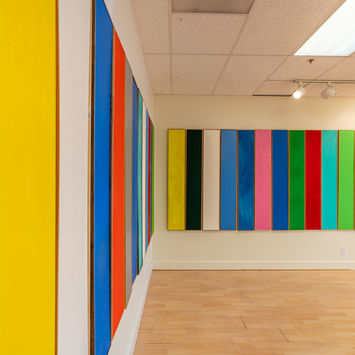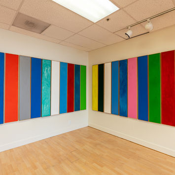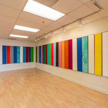 This work is a color experiment exposing color to random environments. The work is in flux and travels from public spaces to corporate offices, private homes to outdoor gardens. The installation temps the viewer to challenge perspectives and take note of their conditions within environments. The paintings have a makeshift magnetism, a frequency, that invents new identities for every space it is placed. Emily seeks to intervene color and routine. When the PLANKS are introduced to a new setting, the spontaneity creates a visual delight breaking monotony and opens new dimensions of mindful thinking about the environment one is in.