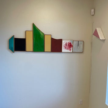 The installation on view is a series of oil paintings on wood organized by the artist to create a configuration of color modulations. The collection of paintings are titled, "Persistent Production" and serve to comment on mass production white maintaining individualism. The installed work is unique to the space in that it remains in flux, changing with each new exhibition. The works can be added or subtracted and tempts to be a performance piece when installed. In small groupings or en masse, the paintings have a makeshift magnetism, a frequency, that invents new identities for every space in which it is placed.
